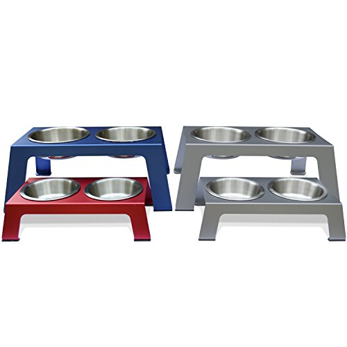 Elevated design aids in healthier digestion and improved comfort leaving your pet happier and more content after their meal! Modern solution made from anodized aluminum (including stainless steel bowls) fits your style. Anti-slip feet to keep in place and silicone insets to help stabilize bowl by minimizing spinning and clanging. Easy to clean and maintain.