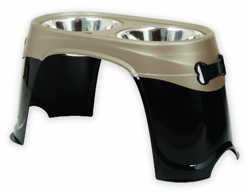 Tall dogs will benefit from the easy reach diner elevated feeder and waterer, which prevents the stooping and discomfort associated with bending down to eat or drink. Easy-to-grip bone cutouts and removable stainless steel bowls make this product's easy to lift and clean. Available in black and pearl tan color.